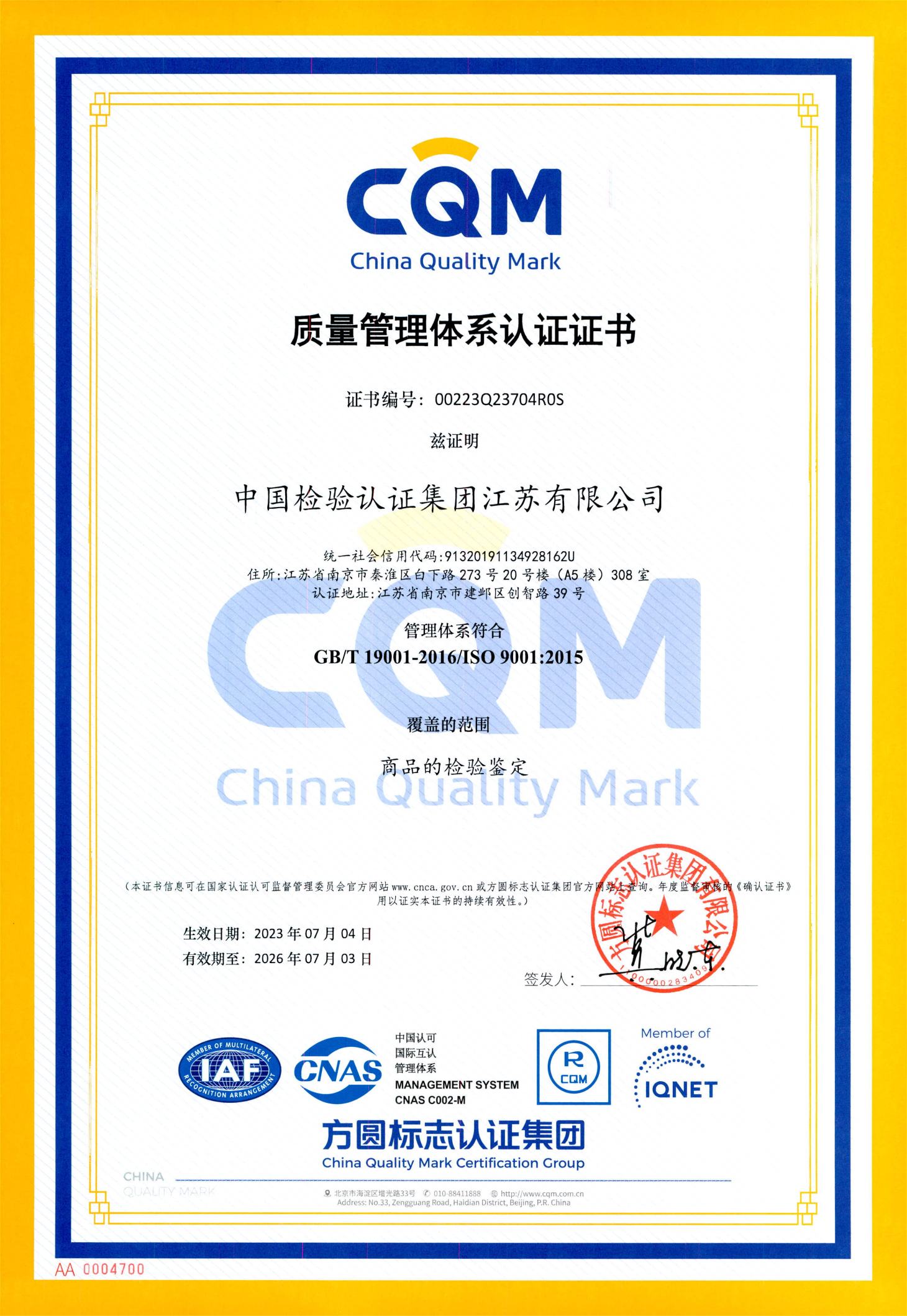 (ISO9001、ISO14001、ISO45001质量、环境、职业健康安全三体系证书)